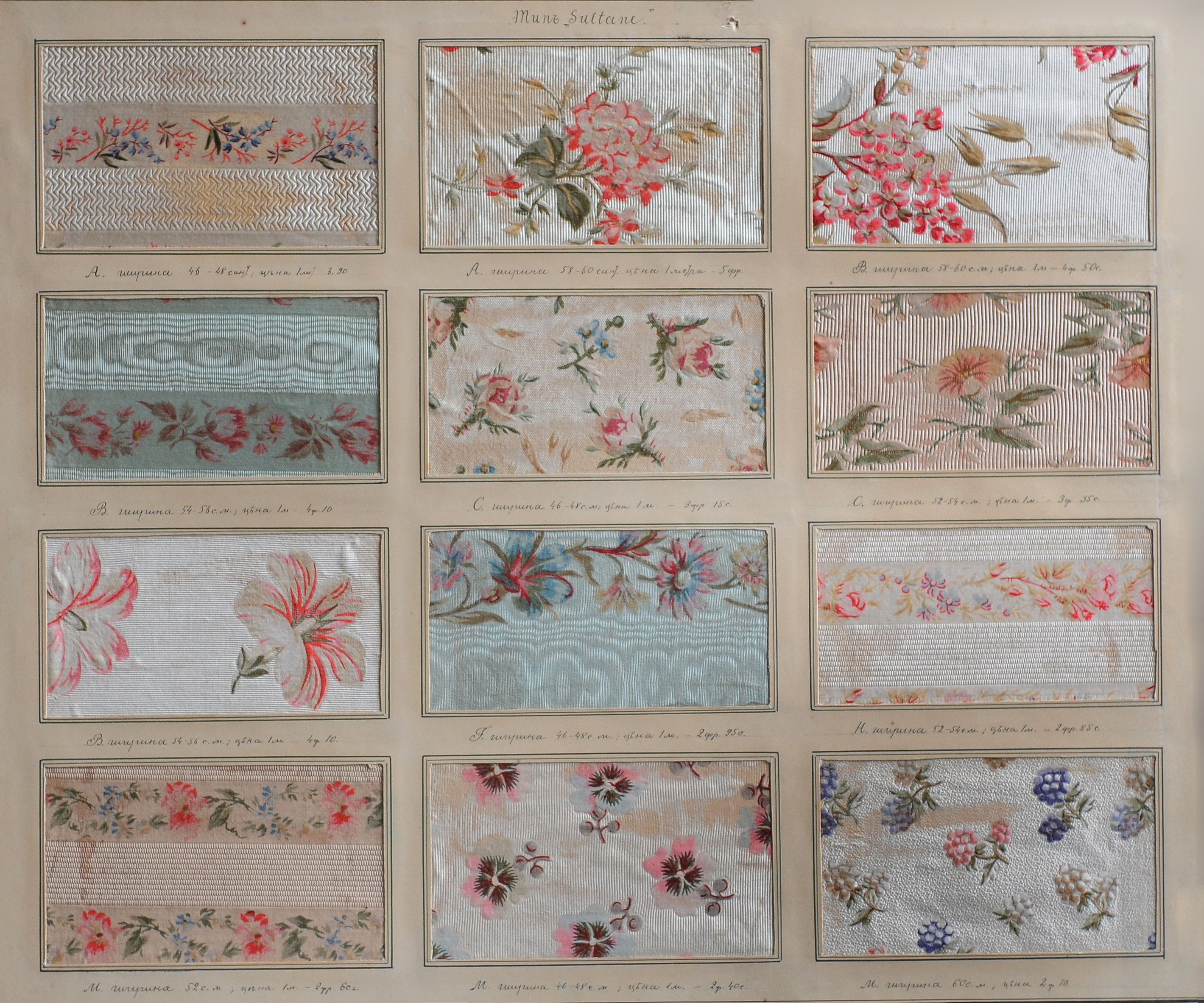 მათ შორისაა: ჯეჯიმი, დარაია, ყანაოზი, ტუსორი, ქალაღაია, უზბეკური იკატი, ნაქარგობა, მაქმანი, ჟაკარდული ქსოვილი, საბჭოთა პერიოდის ინდუსტრიული ქსოვილის ნიმუშები, სხვადასხვა ქვეყნის ეროვნული სამოსი და სხვ.