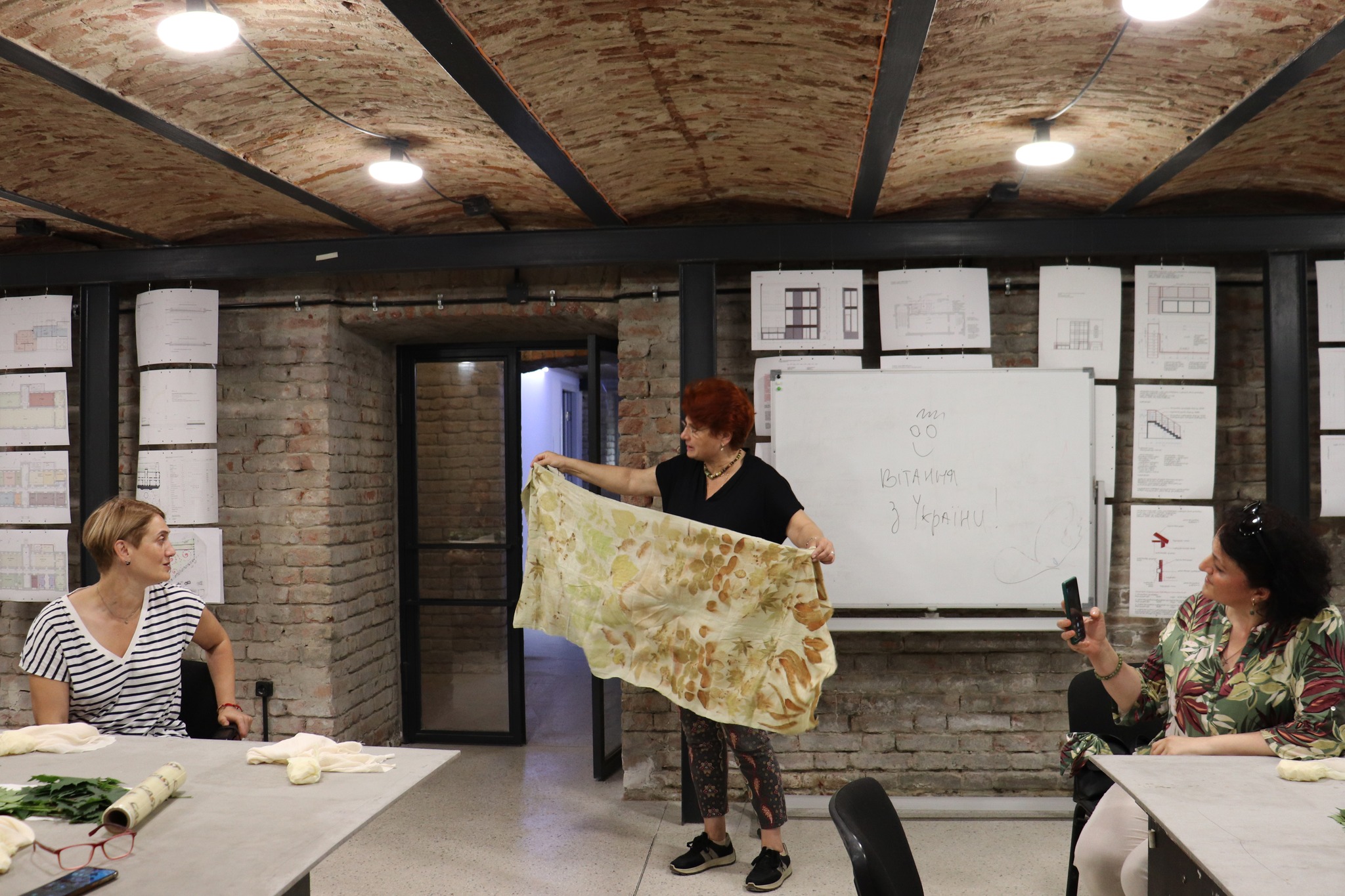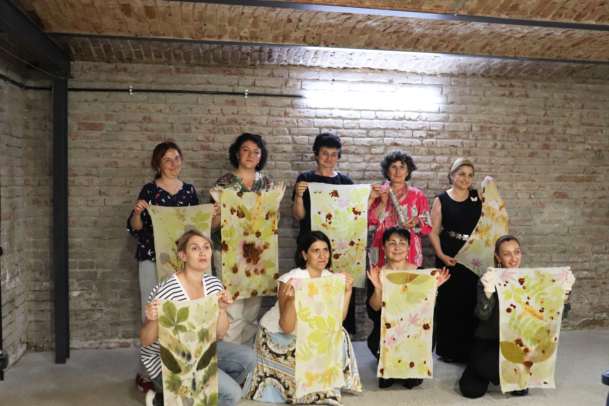 - ლელა კირთაძის ხელმძღვანელობით, მონაწილეები ეკოპრინტის ტექნიკას დაეუფლნენ.