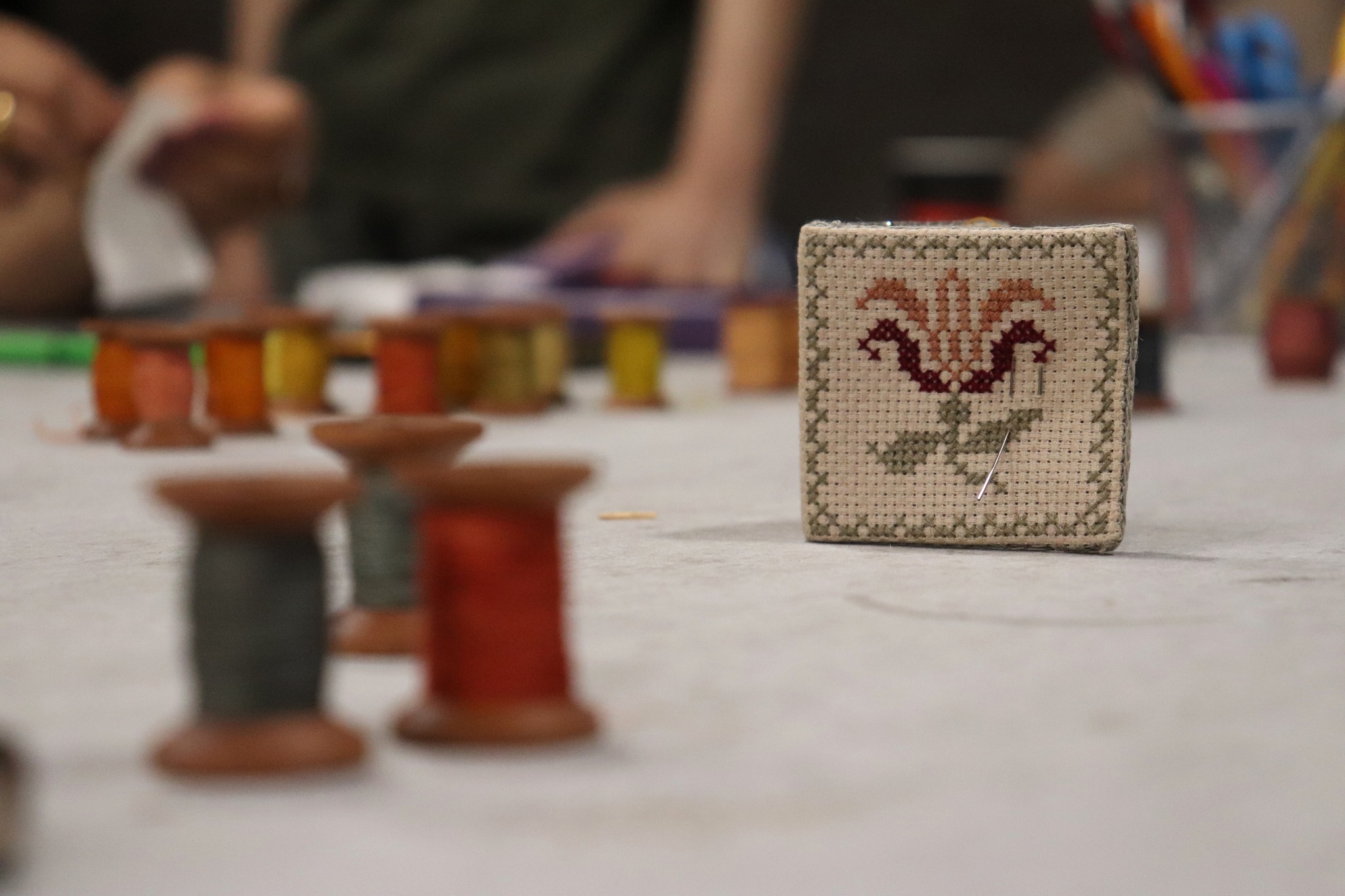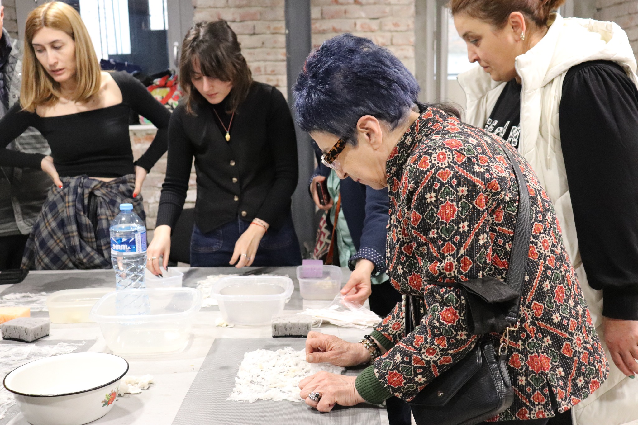 - ანა კაპანაძის ხელმძღვანელობით, მონაწილეებმა ძაფის დართვის ტექნიკა განამტკიცეს.