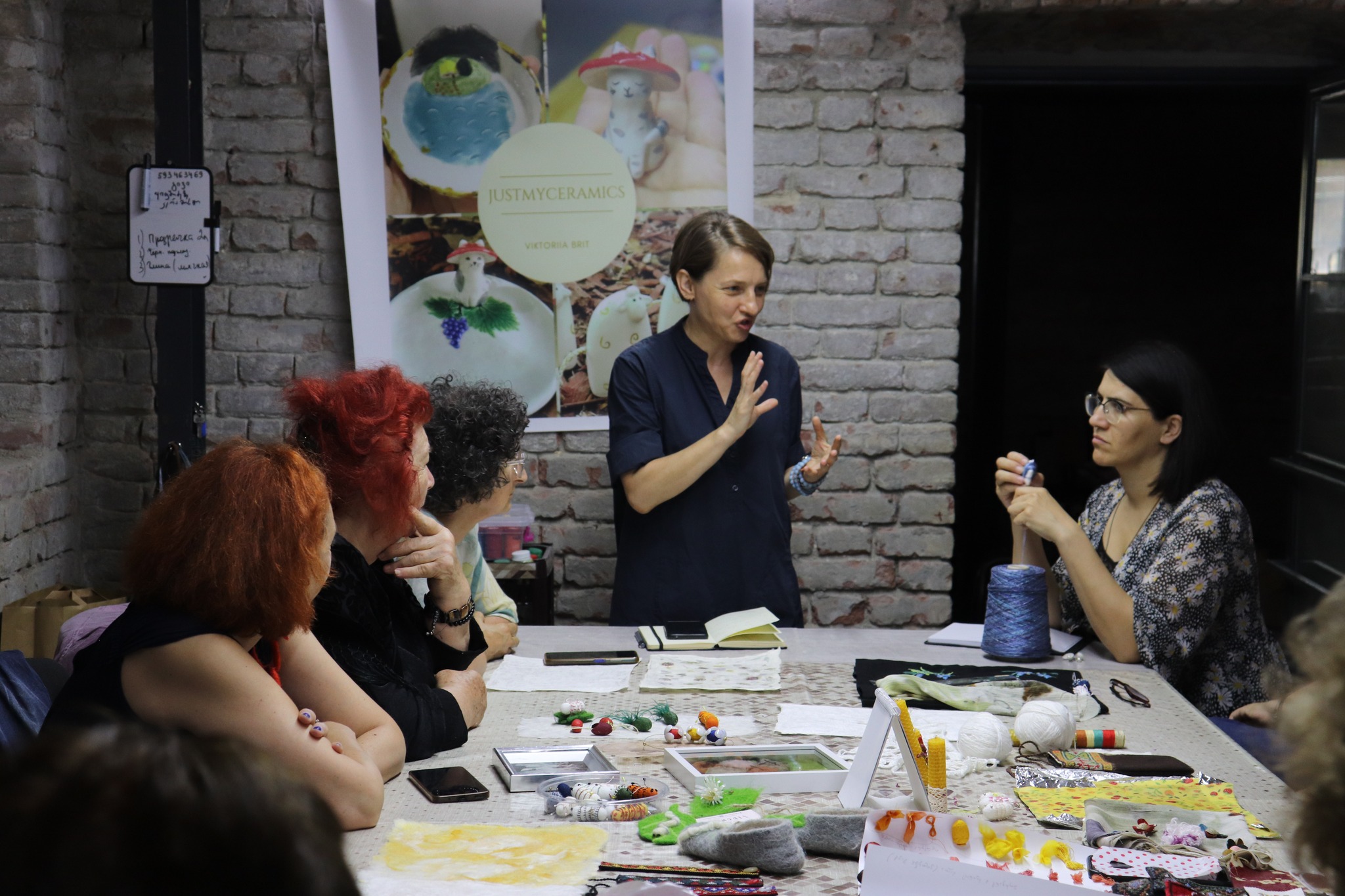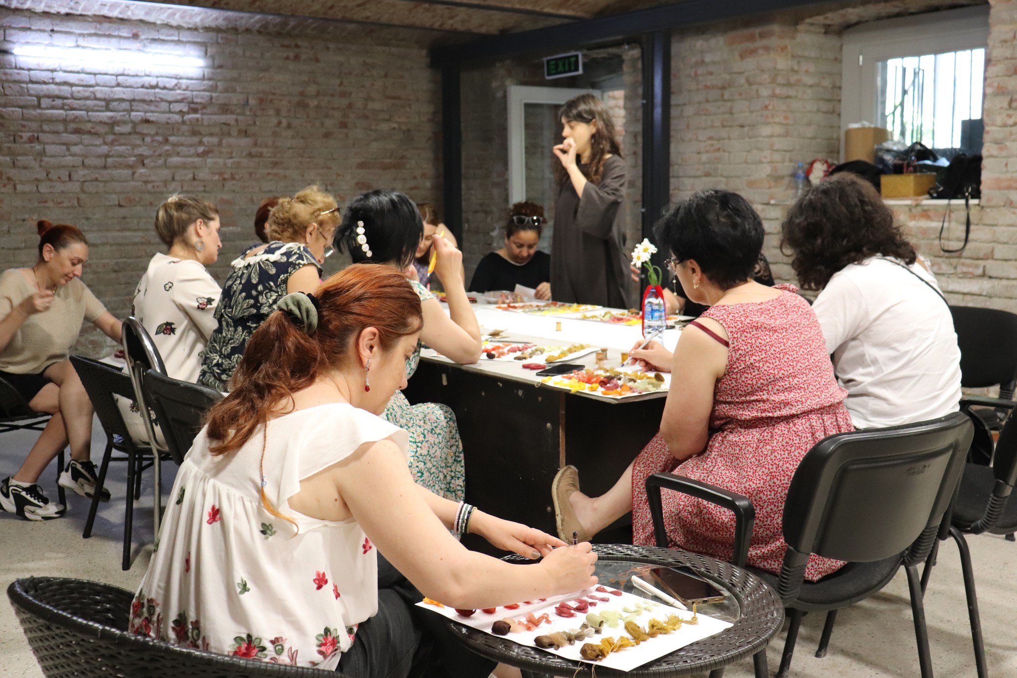 - ანა კაპანაძის ხელმძღვანელობით, მონაწილეები ღებვისა და ქარგვის ტექნიკას დაეუფლნენ.